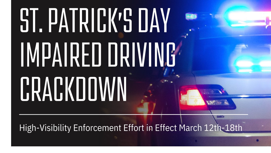 The St. Patrick’s Day enforcement effort is part of a series of high-visibility enforcement campaigns held throughout the year, conducted around major holidays and events, including Super Bowl weekend, Memorial Day, Independence Day, Labor Day, Halloween, Thanksgiving and the winter holiday season.